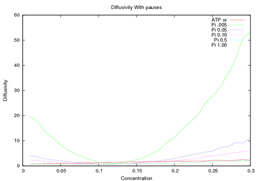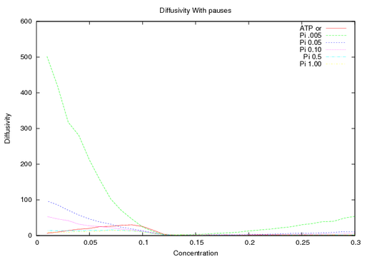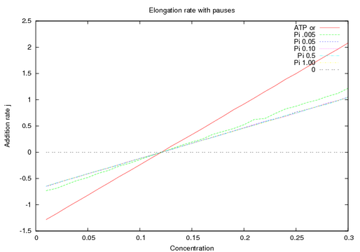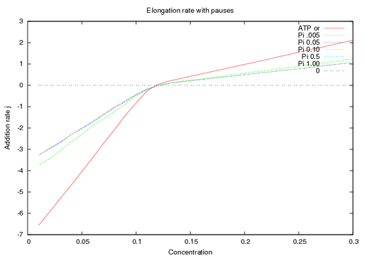 And These are the results when I change the values to all have the same depolymerization constant. I also set the hydrolysis rate and phosphate release rate to zero so that the only thing is polymerization, depolymerization and pauses.